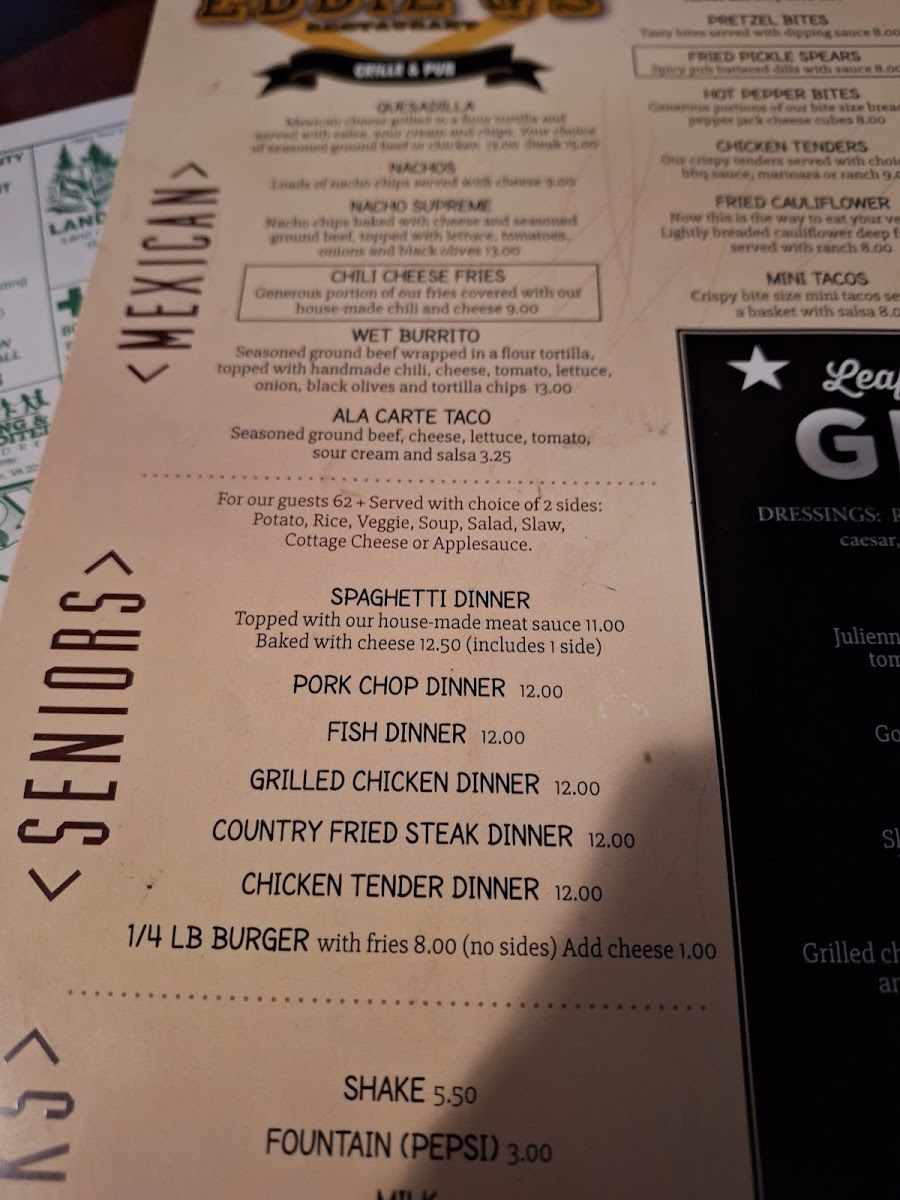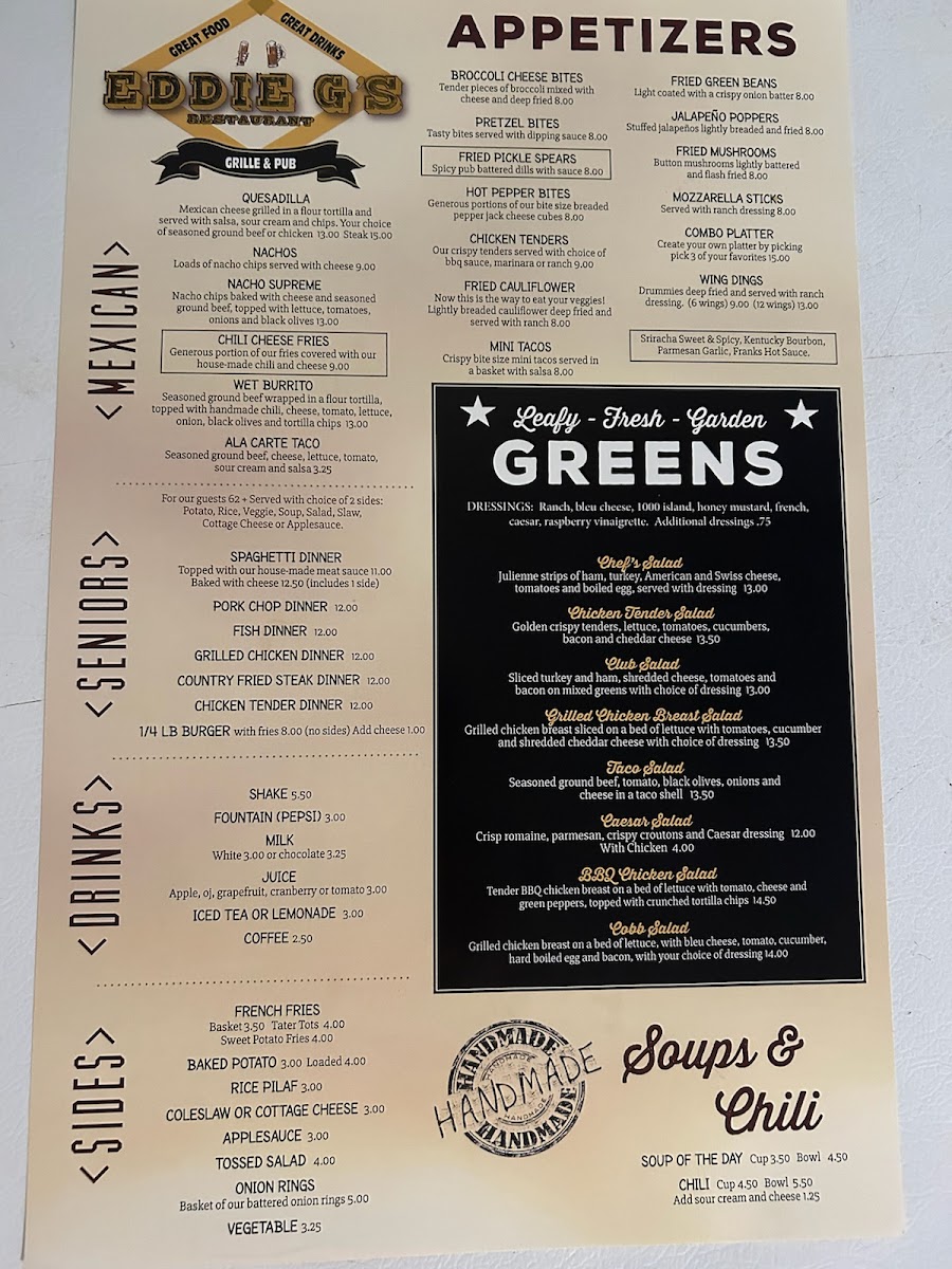 Eddie G's Menu